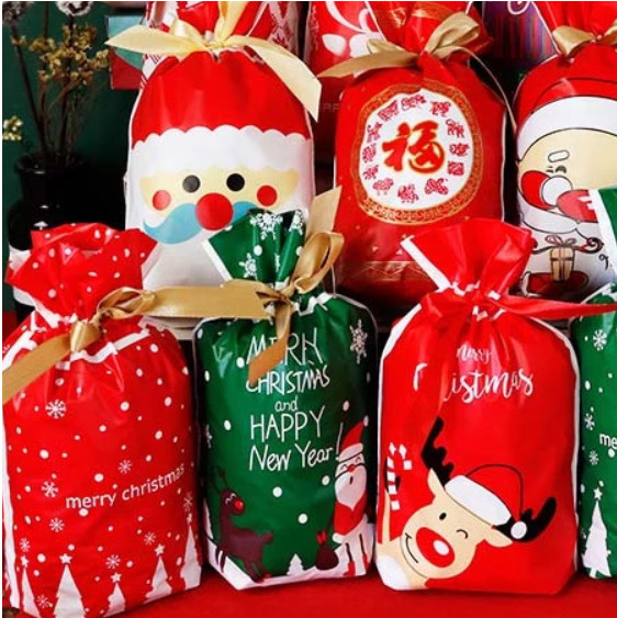 0.08mm 0.06mm LDPE CPE Xmas Drawstring Gift Bags Images |